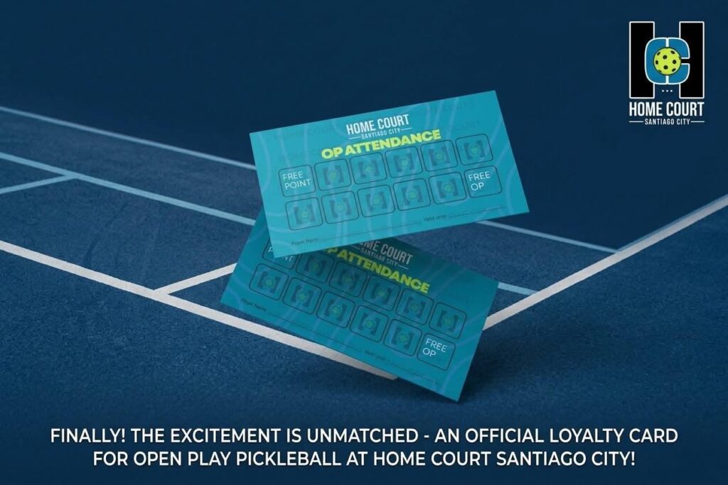 Grab your Open Play Loyalty Card now at Home Court Santiago. Just join any Open Play session to get your card and start earning your way to free court time. See you on the court!